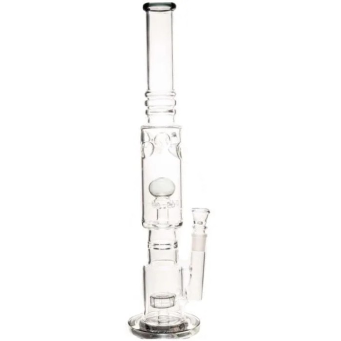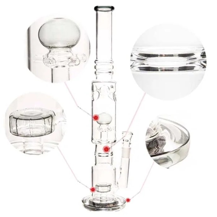 Ten duży model bonga na pewno wpadnie ci w oko przy wizycie w sklepie jako pierwszy, dlaczego?Jego niebanalny kształt oraz wysokość mocno rzucają się w oczy.System potrójnej filtracji o różnych działaniach zapewnią idealnie przefiltrowaną oraz lekką chmurkę,umieszczone nad filtracją miejsce na kostkę lodu przy zastosowaniu tego rozwiązania dodatkowo schłodzą waszą chmurę efekt bedzie-WOW.Pierwsza filtracja na dnie dzbanka to Honeycomb. Jest to bardzo popularna i lubiana przez użytkowników bonga filtracja inaczej zwana plastrem miodu,która sprawia, że wędrujący dym do naszych ust jeszcze bardziej uprzyjemnia palenie.Kolejna z filtracji to klasyka filtrująca- wygląda jak duże bąbelki z dymem, w środku lecące ku górze- bardzo dynamiczna!Nie można również zapomnieć o showerHead, która działa jak słuchawka prysznicowa. Lekki i przyjemny dla oka design sprawi, że bongo nie znudzi się przez długi czas.